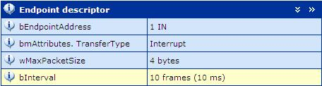 The figure below shows the endpoint descriptor for the interrupt endpoint of an optical mouse and periodic polling of the endpoint.